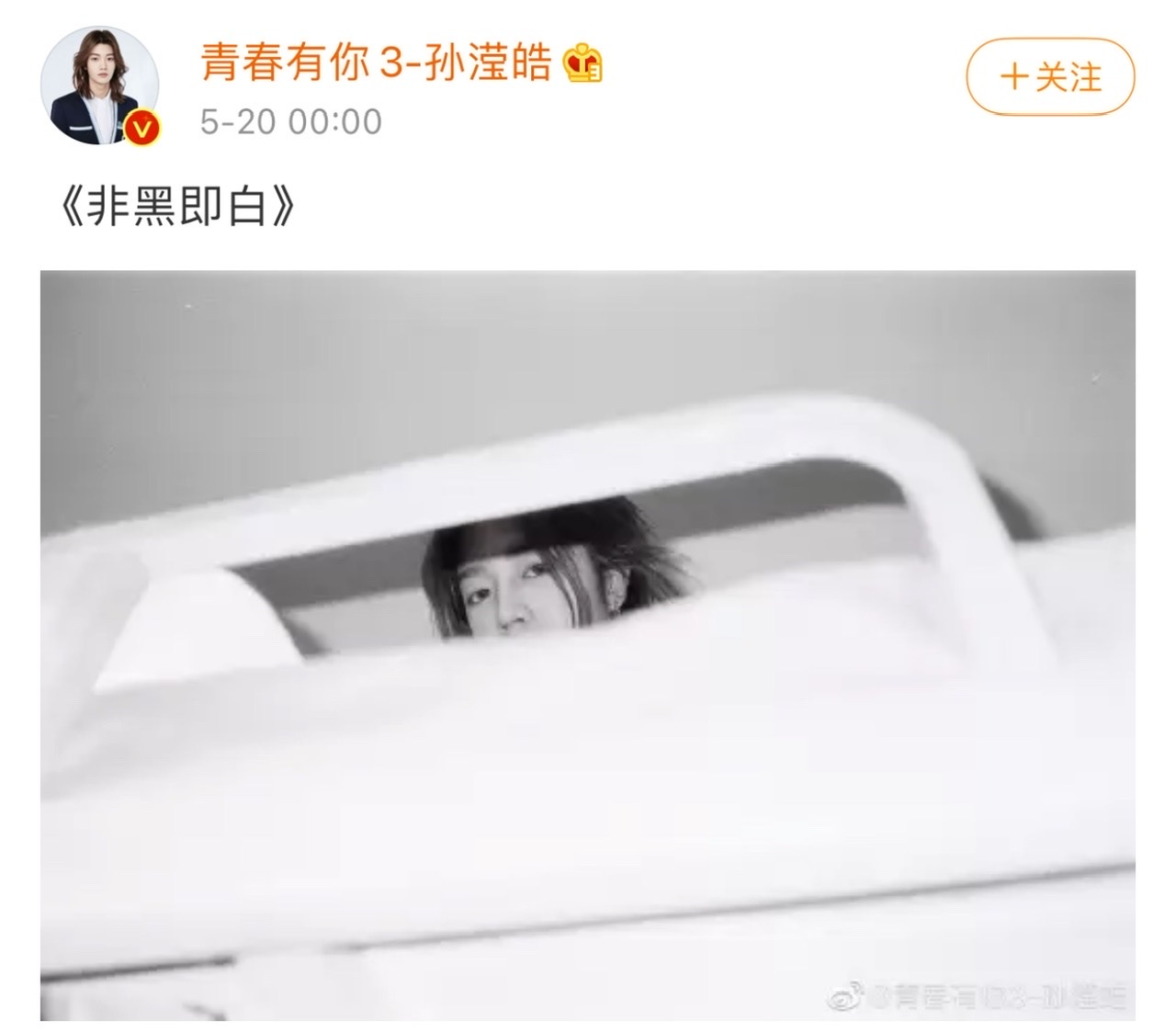 從8號決賽夜開始就沒有消息的孫瀅皓,在踏入520這浪漫的一天,整點發博,配文是:「非黑即白。」嗚哇!好有深度的四個字啊!