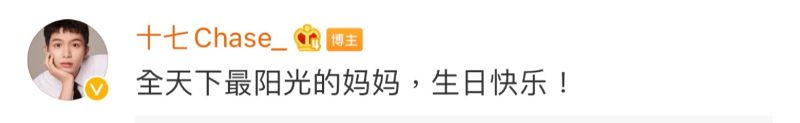 最後來看看十七!我們的Rapper真的…最怕溫柔的Rapper啊!十七卡點零點17分,為自己的媽媽送上了生日祝福!配文是「要永遠陽光,我的兒子🐼」看來是媽媽對十七的祝福啊!