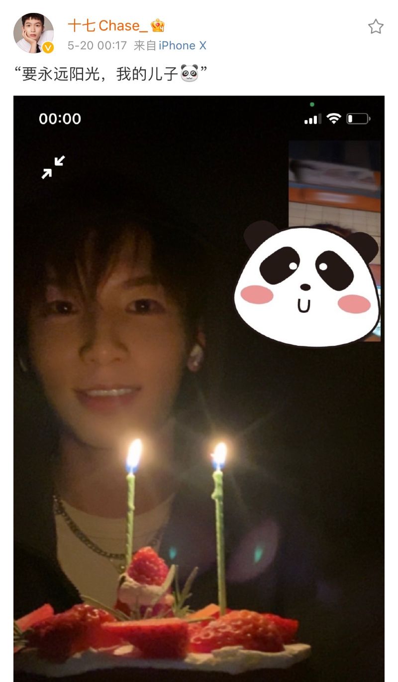 最後來看看十七!我們的Rapper真的…最怕溫柔的Rapper啊!十七卡點零點17分,為自己的媽媽送上了生日祝福!配文是「要永遠陽光,我的兒子🐼」看來是媽媽對十七的祝福啊!