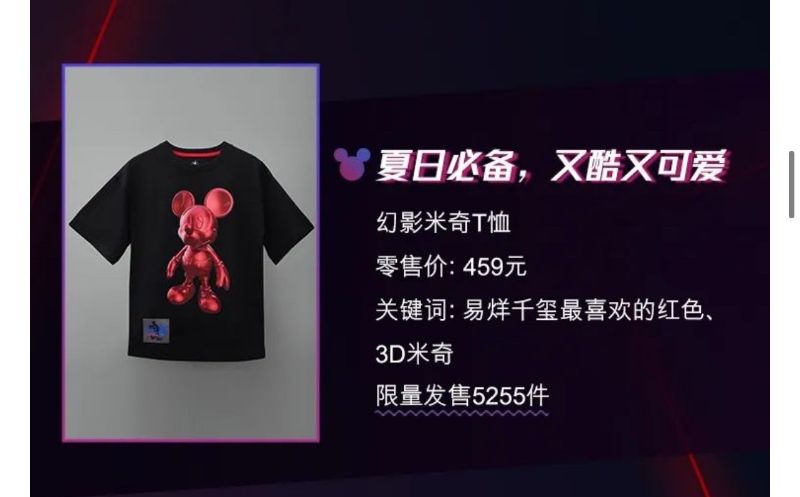 幻影米奇T恤,零售價459元,使用了易烊千璽最愛的紅色,而且由3D效果!限量發售5255件!