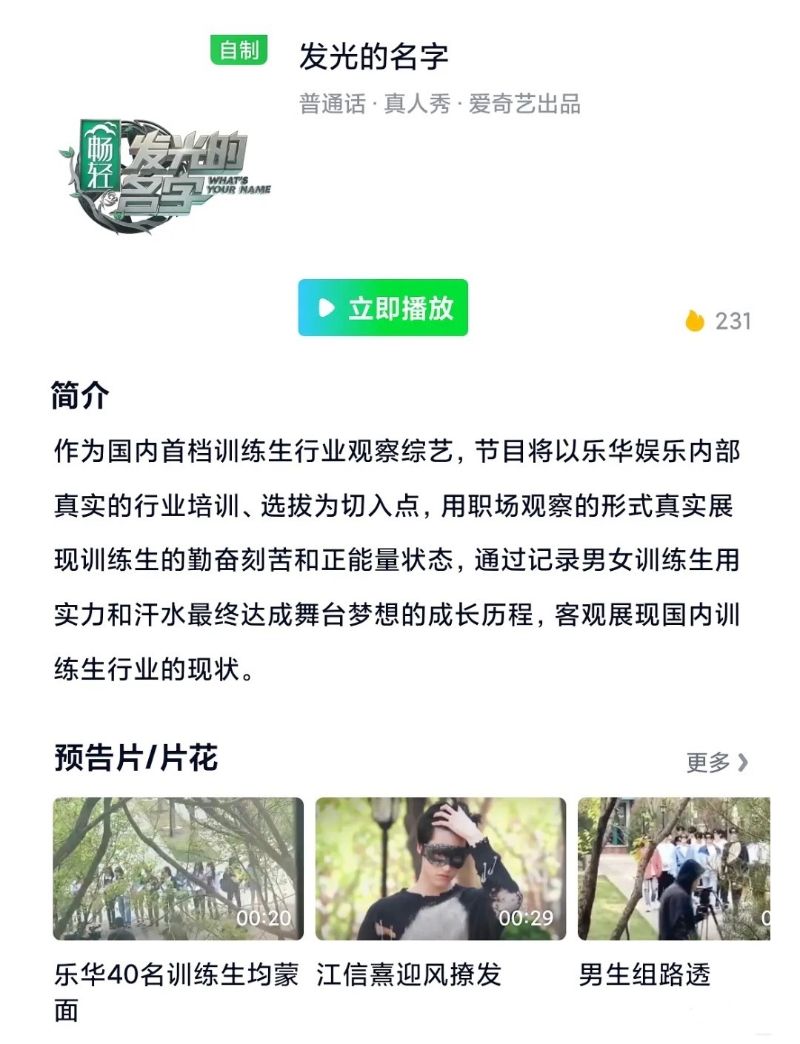 反應最快應該是杜華,因為樂華的選秀節目《發光的名字》,原本是社內練習生競爭出道機會的節目,結果迅速修改了形式,變成了”職場生存“類節目。