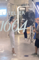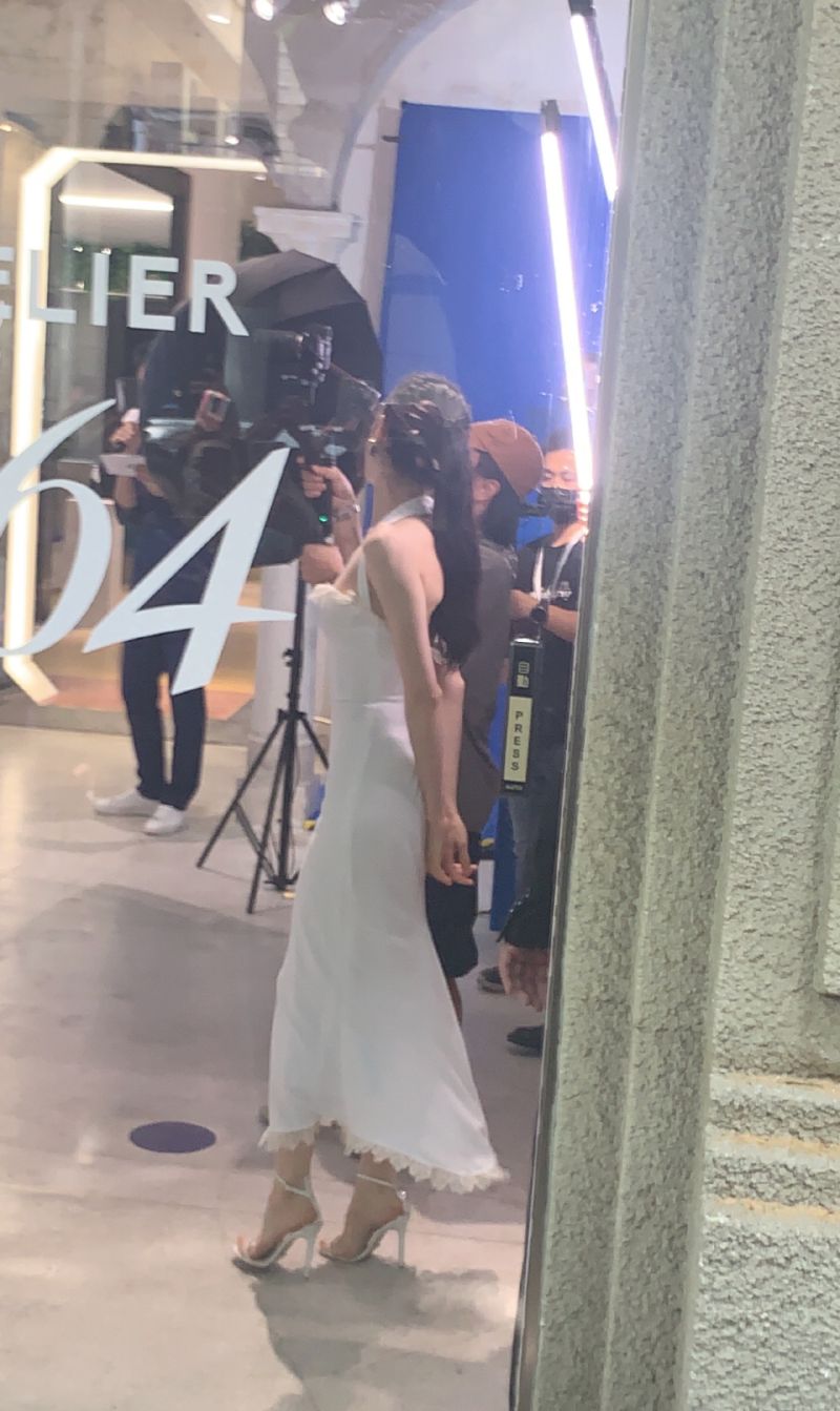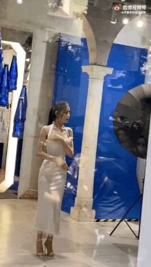 或許有人懷疑是修圖,那就來看看現場生圖吧!活動當天有兩組造型,先來看看第一套純白掛脖長裙,搭配高馬尾,原本就很顯身材的剪裁,更顯得熱巴的腰超細!