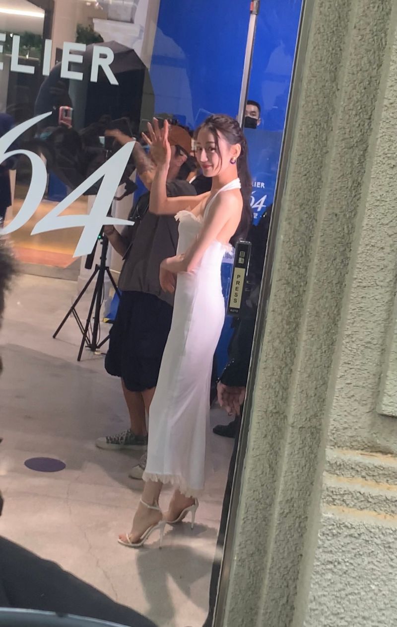 或許有人懷疑是修圖,那就來看看現場生圖吧!活動當天有兩組造型,先來看看第一套純白掛脖長裙,搭配高馬尾,原本就很顯身材的剪裁,更顯得熱巴的腰超細!