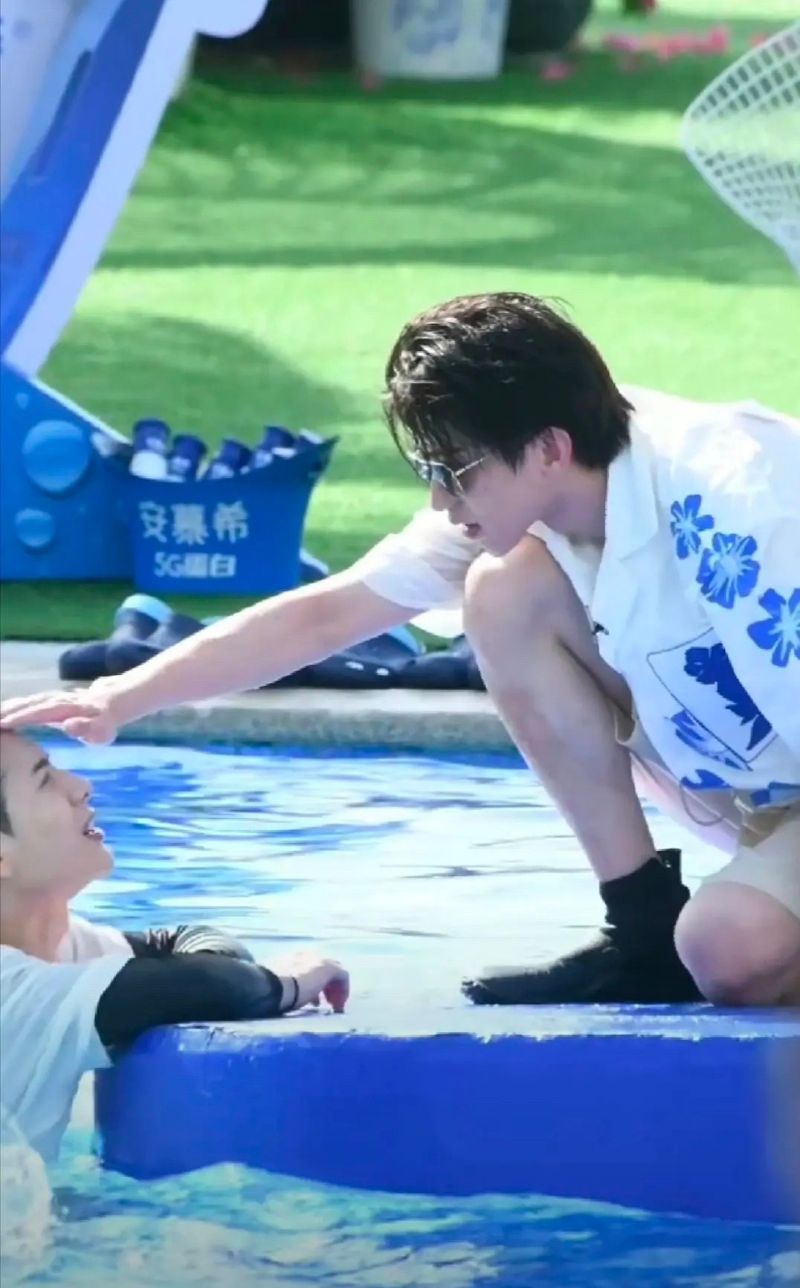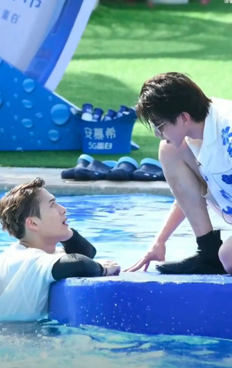 結果就有路透拍到了曾經的師徒兩人,在泳池上演了鐵達尼號???先來看看兩人的對望圖!