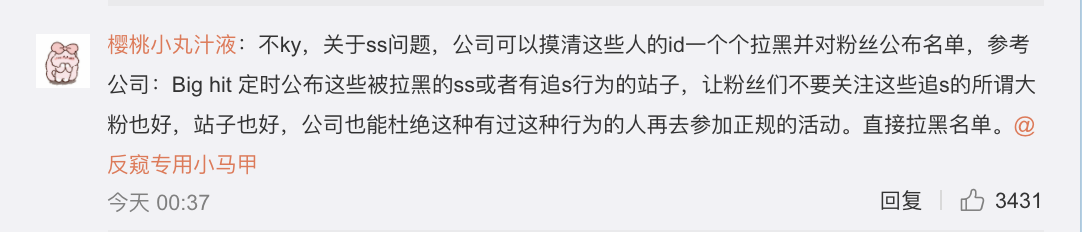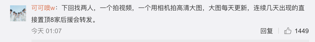 但僅僅掛出來沒用,不少粉絲花式稱讚時,也不忘提建議,如何更好來反黑!「衆籌包個大屏,在重慶循環播放個三天三夜!」、「偏個題,insta360還挺適合拍這種的,挂脖子上就行 一般人也意識不到在拍攝 防抖 便攜!」、「不ky,關于ss問題,公司可以摸清這些人的id一個個拉黑並對粉絲公布名單,參考公司:Big hit 定時公布這些被拉黑的ss或者有追s行為的站子,讓粉絲們不要關注這些追s的所謂大粉也好,站子也好,公司也能杜絕這種有過這種行為的人再去參加正規的活動。直接拉黑名單。」、「下回找兩人,一個拍視頻,一個用相機拍高清大圖,大圖每天更新,連續幾天出現的直接置頂8家後援會轉發。」