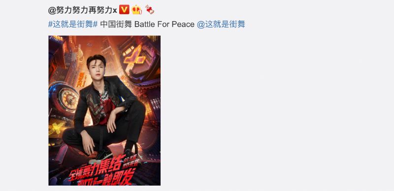這就來看看各隊長的官宣宣言!張藝興的是:「中國街舞 Battle For Peace!」