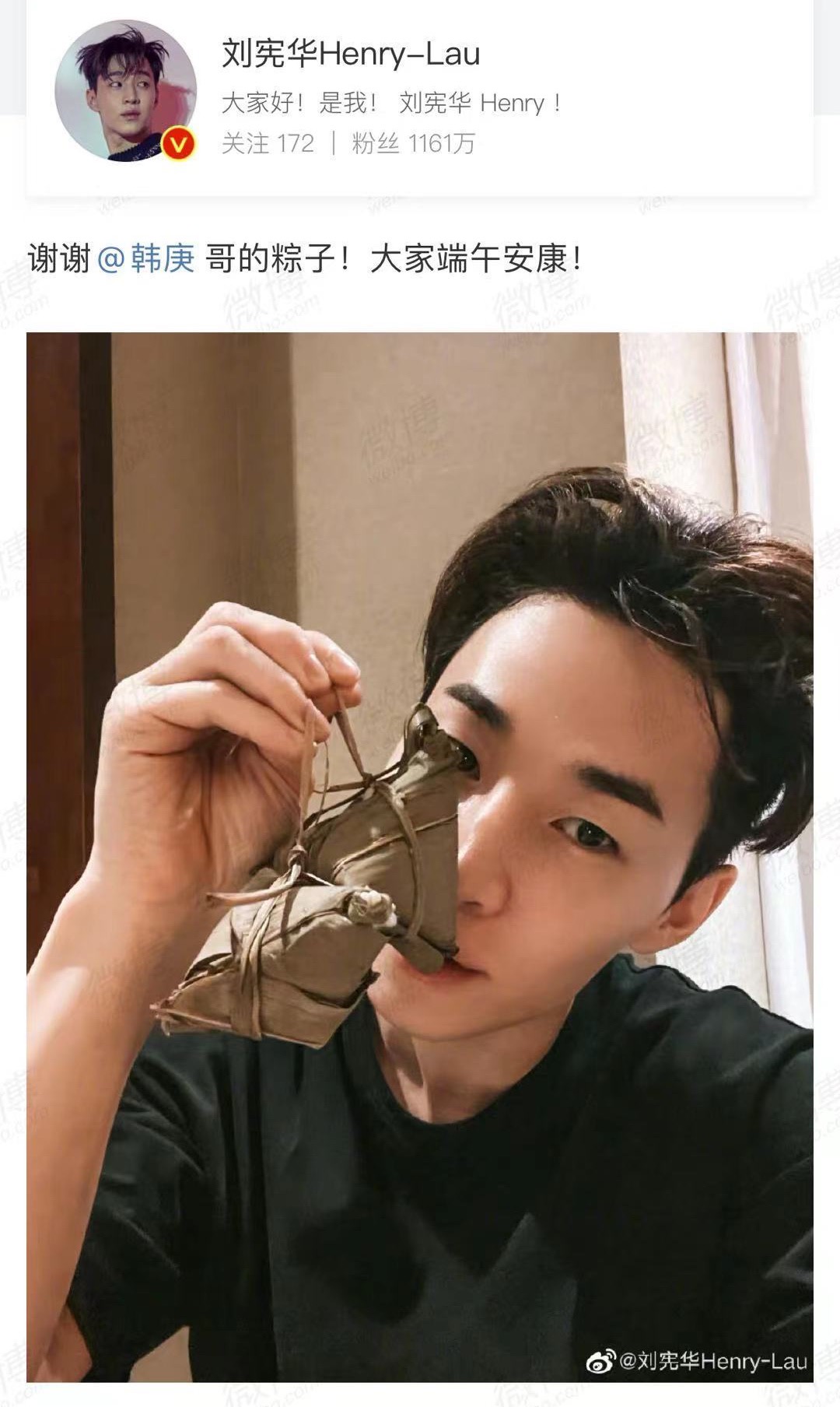 Henry晒韓庚哥送的粽子,嗚哇!期待兩人在《這!就是街舞4》的火花啊!