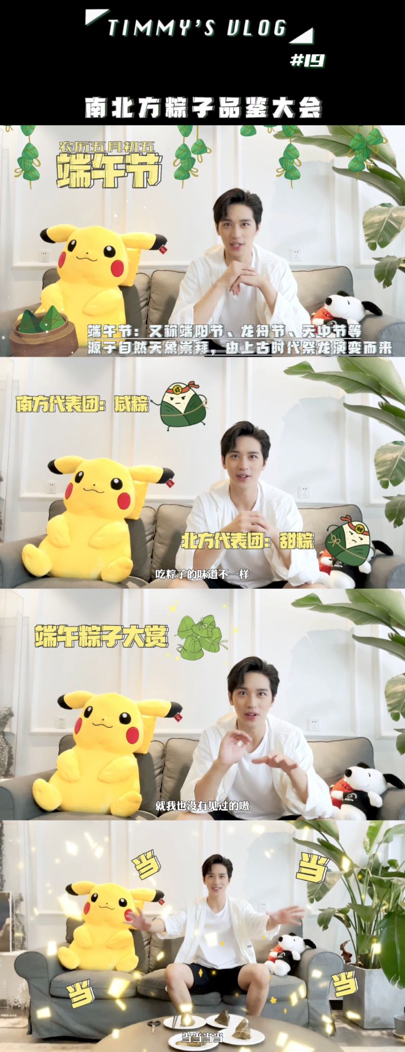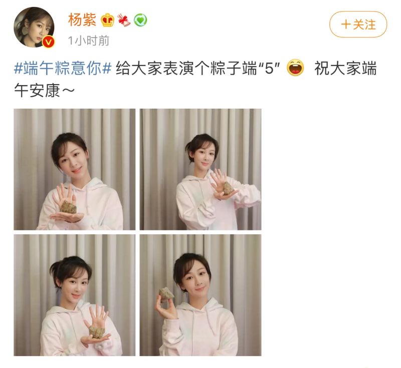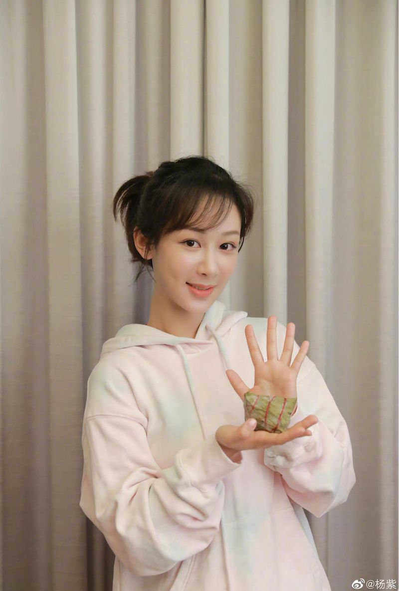 傳統賀端午派,花式拿粽子拍照組包括了楊紫,拿著粽子表演了粽子端”5“!而且小猴紫還是素顏上陣,狀態超好!