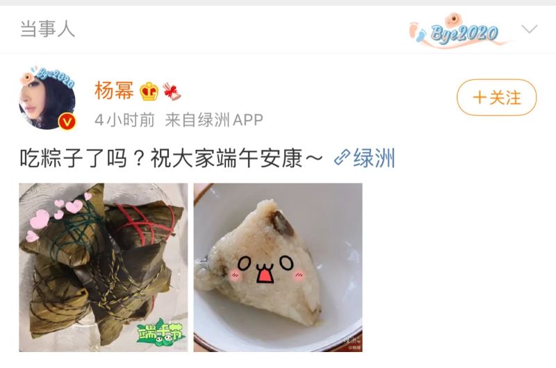 楊冪也問大家吃粽子了嗎?
