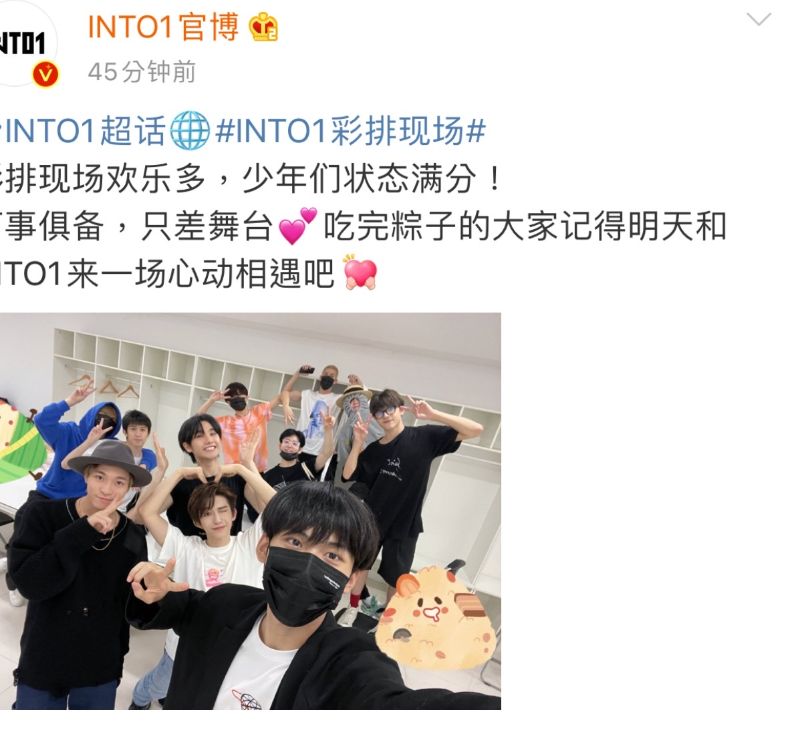INTO1官博發圖,少年們忙完616真心夜的綵排,一起自拍賀端午啦!15號的晚會記得看起喲!來看晚會咯!616真心夜全陣容官宣!28組藝人免費SHOW看起來啊!