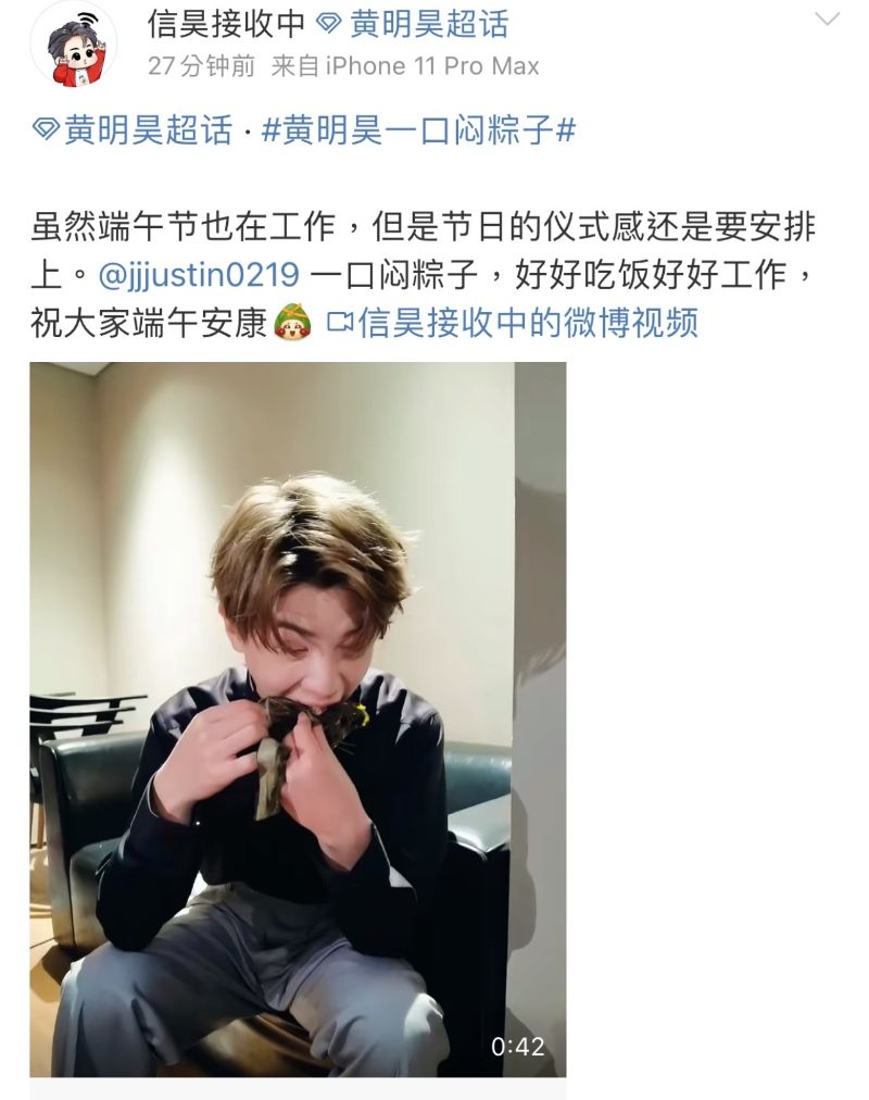 張藝興發視頻說老土賀詞:「萬水千山粽是情,吃個粽子行不行?」哈哈哈哈哈!為什麼給張總說出來,感覺就是特別誠懇啊!