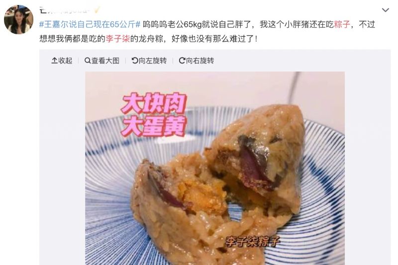 不過除了關注嘎嘎的體重,不少粉絲也留意到…嘎嘎吃的粽子,居然是李子柒家的粽子呢!