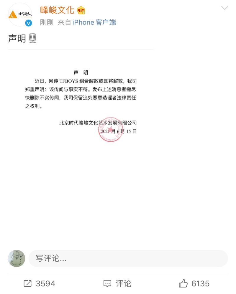 正當全網在感慨時代的結束時,TFBOYS所屬經紀公司時代峰峻也第一時間發文,否認了TFBOYS即將解散的消息!但看得出來時代峰峻很急,居然把2021年寫成了2021月,哈哈哈哈哈哈哈哈!