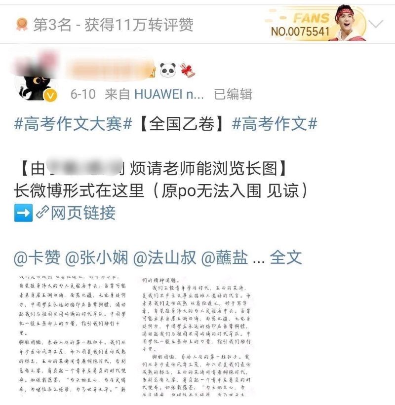 不過可愛的是,在路人忙著感傷的時候,我們的帝國姐姐正忙著什麼呢?答案是舉辦高考作文比賽…哈哈哈哈哈哈!來看看前三名得獎者!