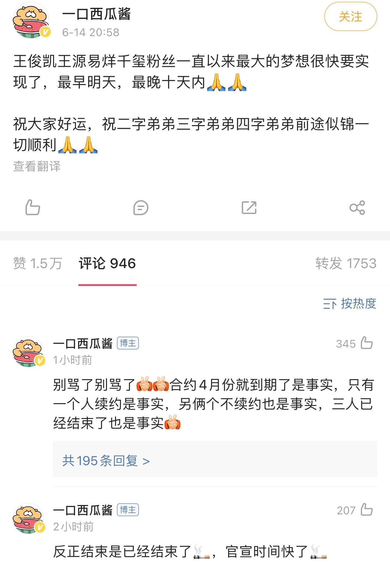 主要是一個自媒體發文,表示TFBOYS三人合約在4月都到期了,但只有一個人續約,即將要官宣解散了!