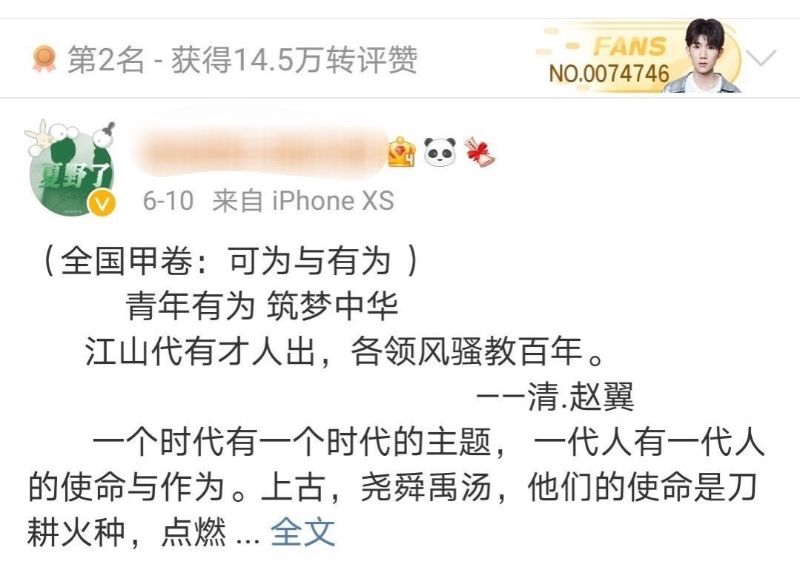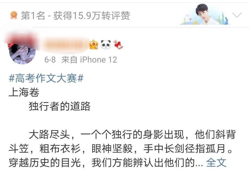 不過可愛的是,在路人忙著感傷的時候,我們的帝國姐姐正忙著什麼呢?答案是舉辦高考作文比賽…哈哈哈哈哈哈!來看看前三名得獎者!