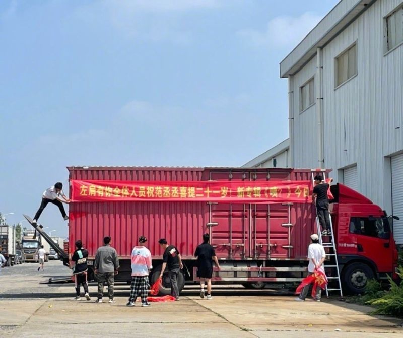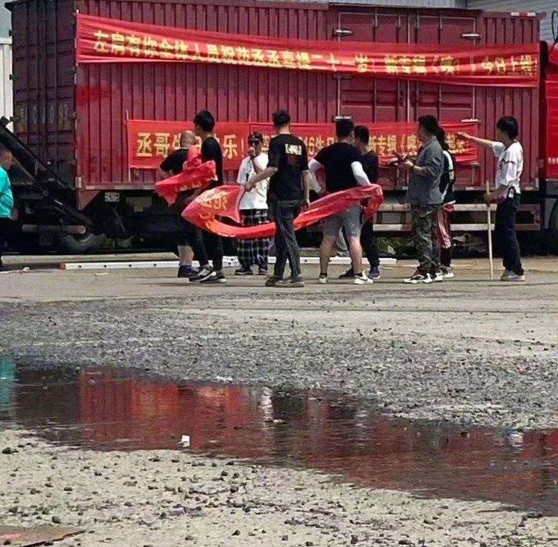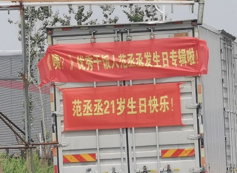 片場附近滿滿都是土味橫幅…稱范丞丞是優秀幹飯人,還提到他喜提21歲,都太可愛啦! 果然…土到極致就是潮,接下來大概很多人慶生,都會get同款大紅橫幅啦!