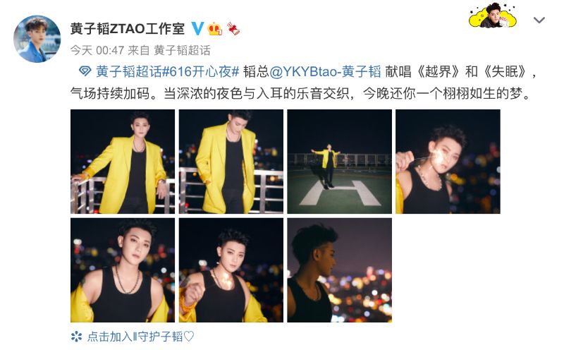 又是另一個因為工作室而和粉絲起爭執的藝人啊!表示黃子韜在16號參加了《湖南衛視天貓開心夜》晚會,相比起其他藝人工作室一早出了造型圖,黃子韜工作室一直到晚會結束,17號零時47分才發出造型圖!