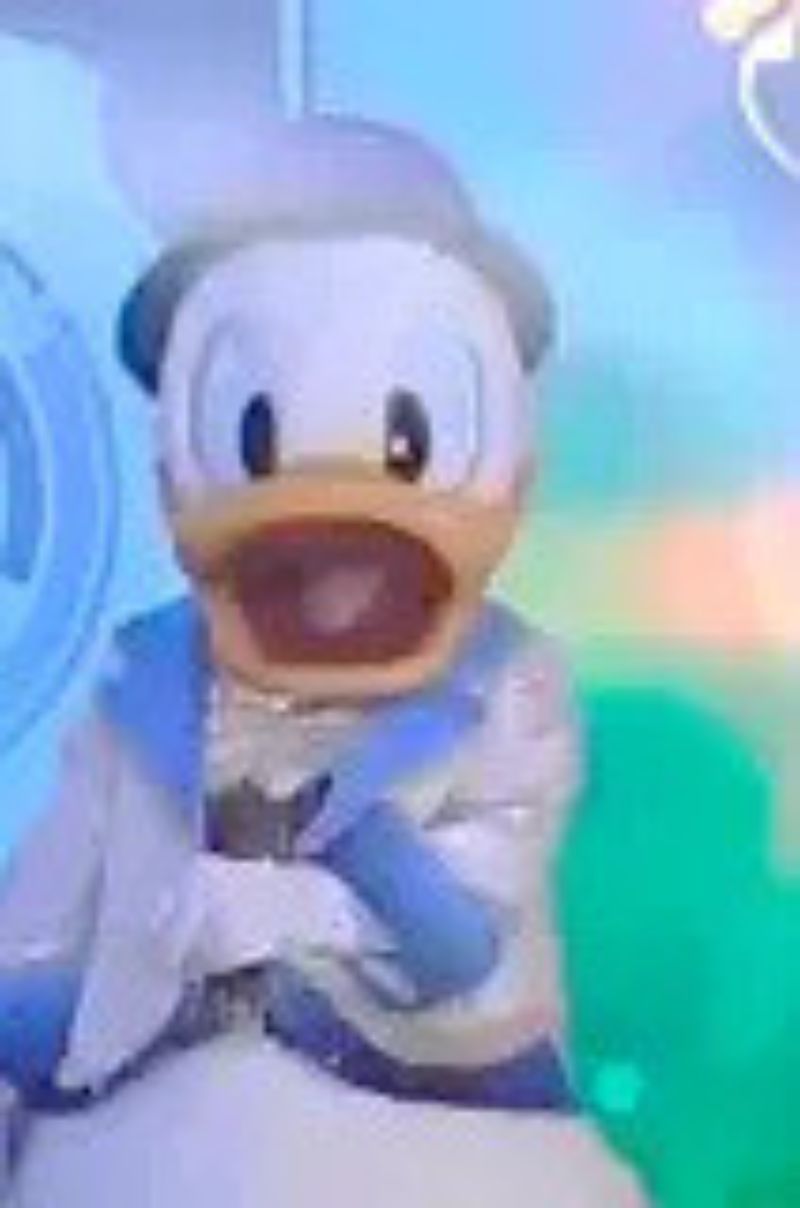 但鏡頭外,卻和迪士尼卡通人物打成一片!