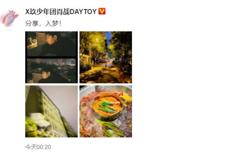 舞台劇結束之後,肖戰在21日凌晨零點二十分發文,分享了幾張照片,當中包括了一張火鍋照片。