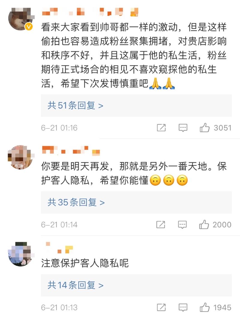 理智的粉絲立刻意識到不妥,在網上呼籲大家不要去打擾劇組人員吃飯,有的還在指責店家不該洩露客人的隱私。 隨後店家再度發文致歉,並表示藝人已經安全離開。
