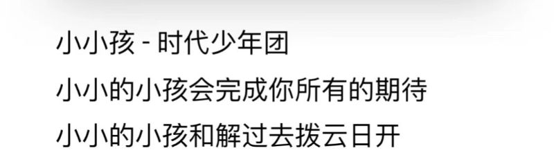 就有網友發現,王源為時代少年團寫的這首《小小孩》,當中有些歌詞似乎對應TFBOYS成名曲之一的《不完美小孩》。像是《不完美小孩》裡的:「當我努力做個完美的小孩,滿足所有人的期待」,在《小小孩》中成了:「小小的小孩會完成你所有的期待,小小的小孩和解過去撥雲日開」
