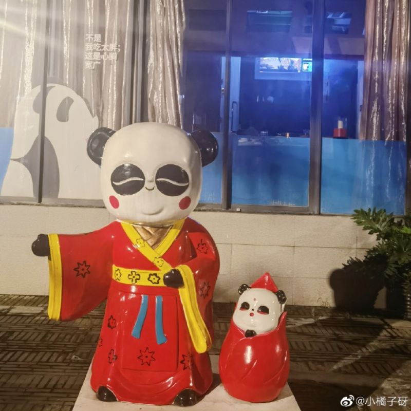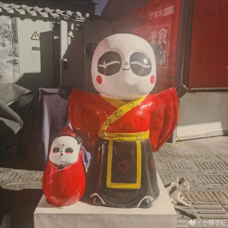 路邊的熊貓擺設,還拍了老年人遊客照!