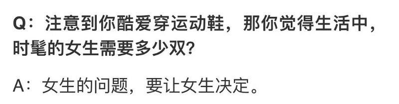 而小編覺得嘎嘎最紳士的一點,就是當被問到覺得時髦女生需要多少雙運動鞋時?嘎嘎的回答是:「女生的問題,要讓女生決定。」