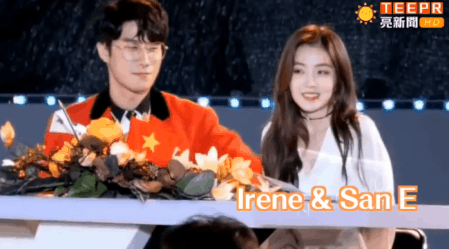 最出圈的就是在舞台上,高情商的幫忙被San E騷擾的Irene解圍,有技巧的擋在了Irene和San E之間。