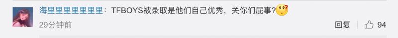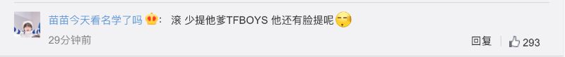 但這篇聲明在幫馬嘉祺聲明澄清之餘,似乎引起了不少粉絲不滿,尤其是TFBOYS的粉絲,覺得不需要在聲明中牽涉到TFBOYS,熱評如:「提tfboys幹嘛?」、「提TFBOYS是幹什麽?」、「?別提祖師爺😅😅」、「TFBOYS被錄取是他們自己優秀,關你們屁事?」