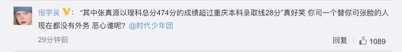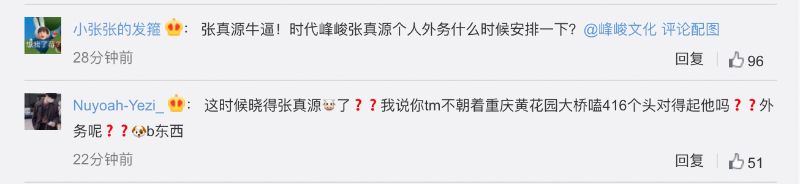 而張真源的粉絲之前就因為張真源至今尚未有個人外務維權,在聲明出來之後,也再次重提此事!「“其中張真源以理科總分474分的成績超過重慶本科錄取線28分”真好笑!你司一個替你司長臉的人現在都沒有外務,惡心誰呢?」、「張真源牛逼!時代峰峻張真源個人外務什麽時候安排一下?」、「這時候曉得張真源🐮了??我說你tm不朝著重慶黃花園大橋嗑416個頭對得起他嗎??外務呢??」