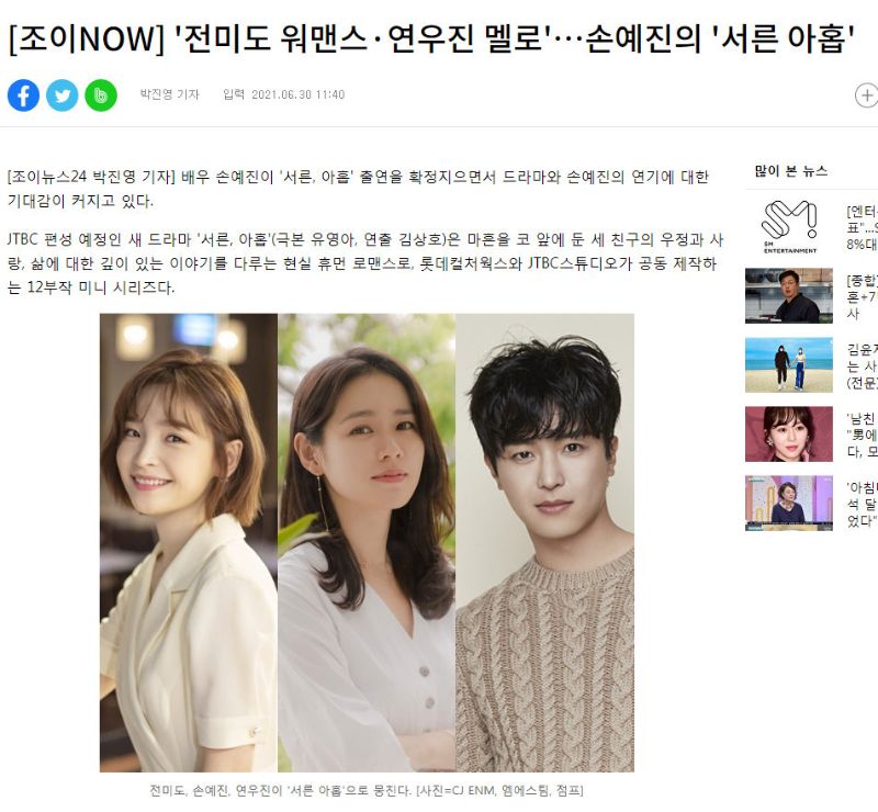嗚哇!神奇聯動啊!表示據韓媒,時隔三年再度回歸JTBC拍攝電視劇的孫藝珍,確定將出演韓版《三十而已》——《30,9》(서른, 아홉)。