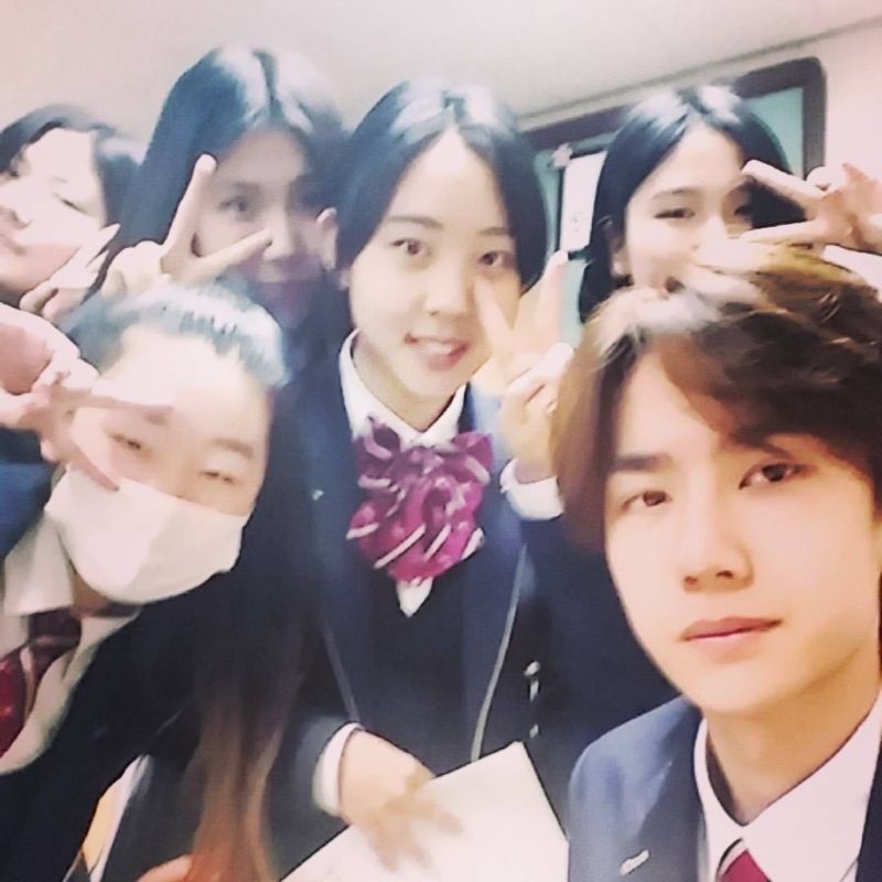 王一博曾在韓國當了幾年的練習生,當時王耶啵就讀韓國首爾翰林藝術高中,可以說是校內有名的校草,看看這張都是女同學就知道了唄!