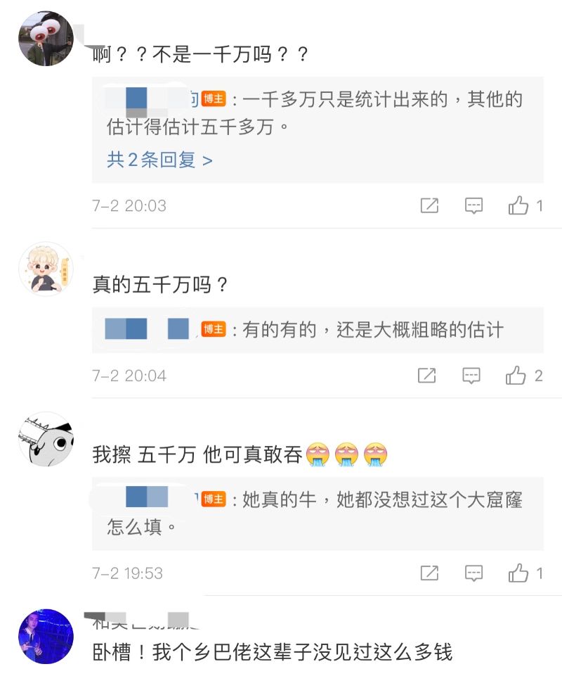 不管是1000多萬還是5000萬,這數目,真的讓人咋舌,究竟怎麼敢吞啊???但溫馨提醒,一切為該原吧主個人行為,請勿上升至燦烈,還有追星這個行為本身。