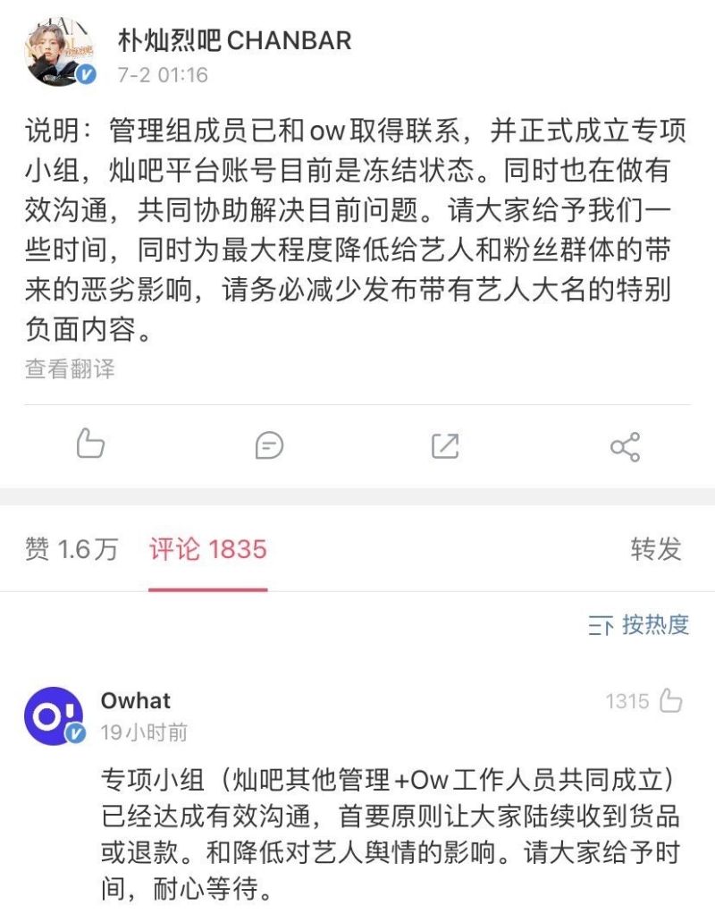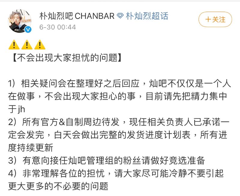 在6月30日消息爆出之後,朴燦烈吧第一時間回應,表示會盡快整理後回應。