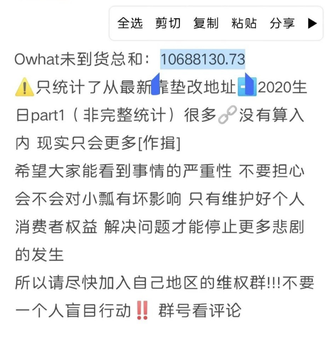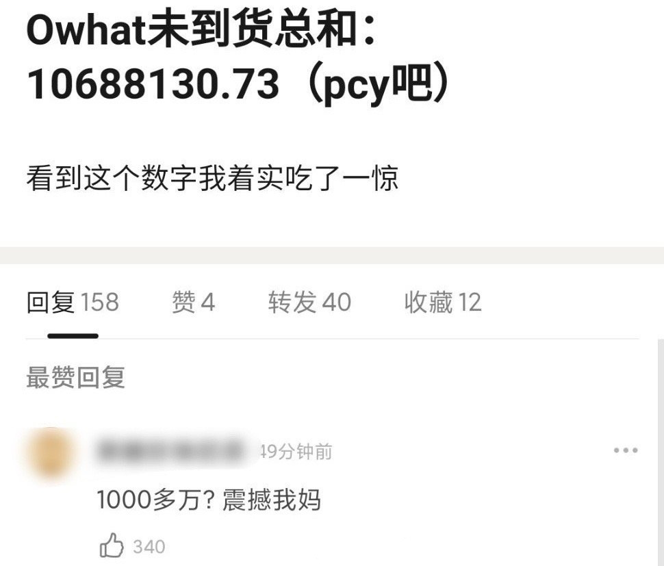 根據統計,這位原吧主僅在Owhat這個平台,就尚拖欠粉絲總計10688130.73萬元!