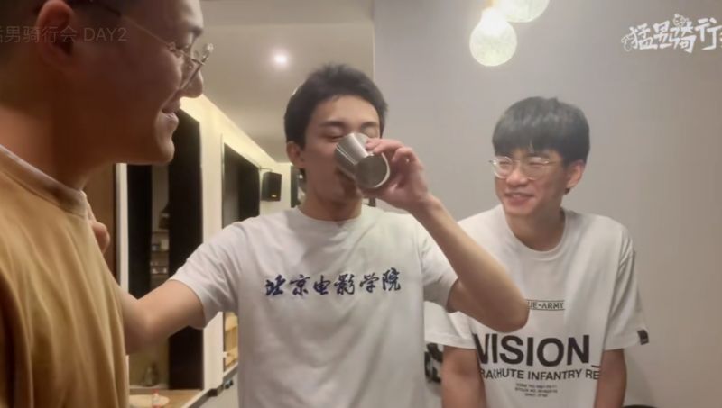 比如…在最新上傳的騎單車vlog中,我們又見到了吳磊穿著北電T恤入鏡~