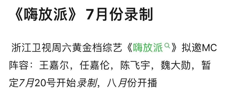 來吃瓜!!!是噠!網傳浙江衛視即將製作一檔號稱是”2021年最瑞思拜的節目“,叫做《嗨放派》!