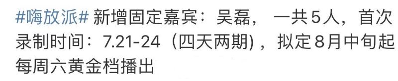 另一個說法是李榮浩也會加入,和魏大勛各錄製一半,目前這兩個還未確定,但其他幾個網傳是確定了!據說將在7月21日至24日開始第一次錄製,並擬定8月中旬起,每週六黃金檔播出。