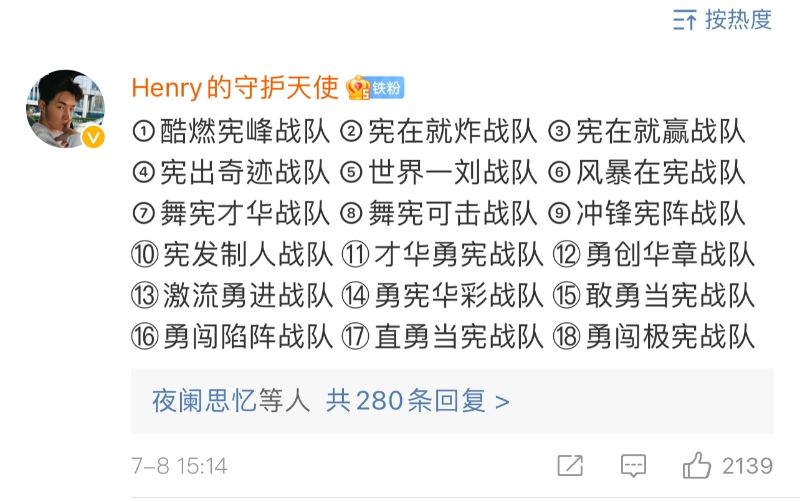 來看看熱評第一的粉絲留言,真的只能大寫的瑞思拜!給出的戰隊名字建議居然有18個這!麼!多!