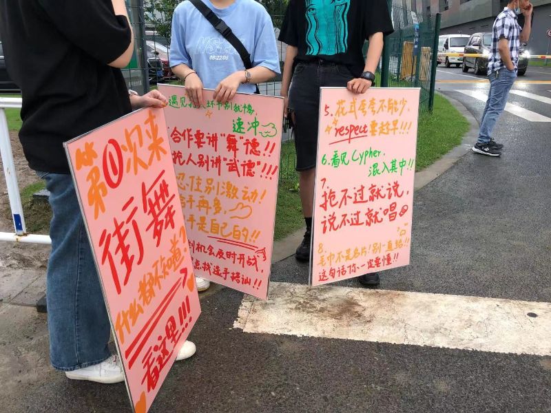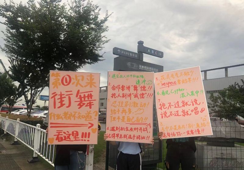 沒錯!舉著大字報站在這街錄製現場外,溫馨提醒自家正主:「第一次來街舞什麼都不知道?看這裡」,並列出了8個生存條規!