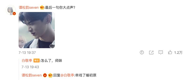 嚇得小白立刻回復:「怎麽了,師妹?」譚松韻秒懂回復:「串戲了喻初原!」怎麼一回事?原來喻初原就是小白在兩人初合作戲劇《旋風少女》中的角色名,而譚松韻飾演的就是他的師妹啊!小白這一句,真的讓人秒回兩人在劇中的感覺啊!