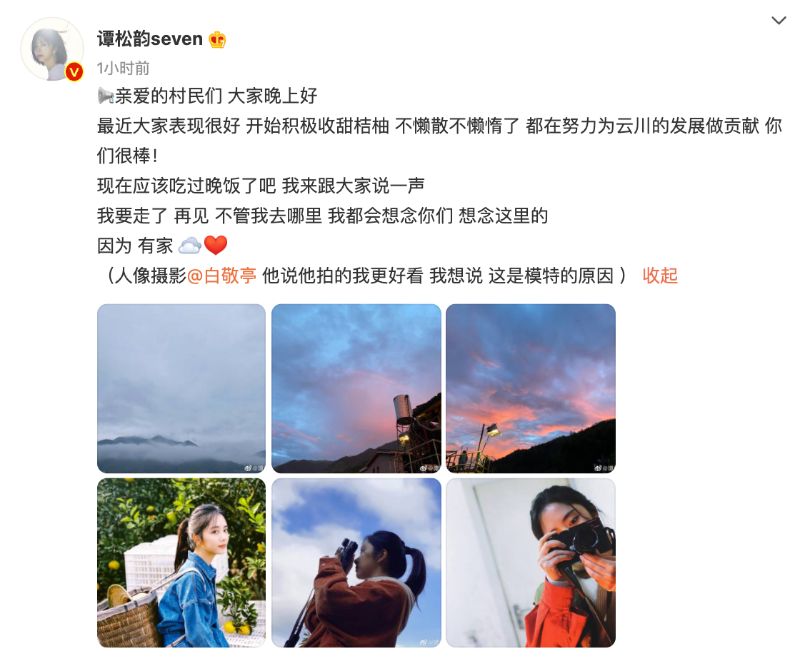 最近大家表現很好,開始積極收甜桔柚,不懶散不懶惰了,都在努力為雲川的發展做貢獻,你們很棒!現在應該吃過晚飯了吧!我來跟大家說一聲!我要走了!再見!不管我去哪裏,我都會想念你們,想念這裏的!因為,有家 [浮雲][心](人像攝影@白敬亭 他說他拍的我更好看 我想說 這是模特的原因 )」