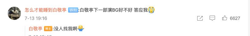 表示兩人CP感真的很強,不少網友都在敲碗兩人可以再合作小甜劇,也有粉絲留言:「白敬亭下一部演BG好不好 答應我!」但沒想到居然獲得小白翻牌回復:「沒人找我啊[攤手]」