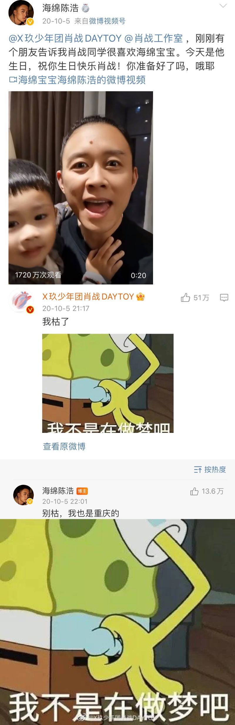 每次看見肖戰發海綿寶寶,都能感受到他那有趣的靈魂,點滴小事見品性,真的是有趣幽默又帥氣的男神啊!希望這位內娛的海綿寶寶鐵粉,就和他喜歡的🧽一樣,天天開心啊!!!