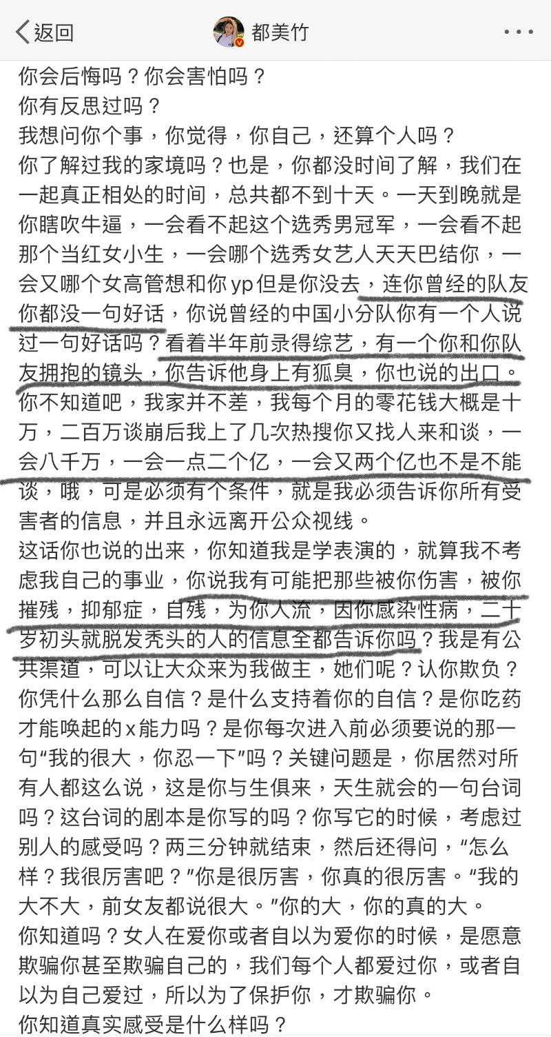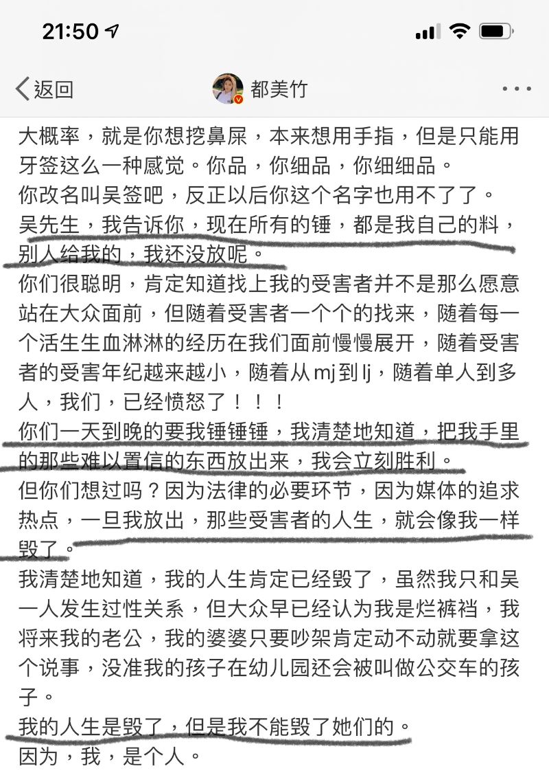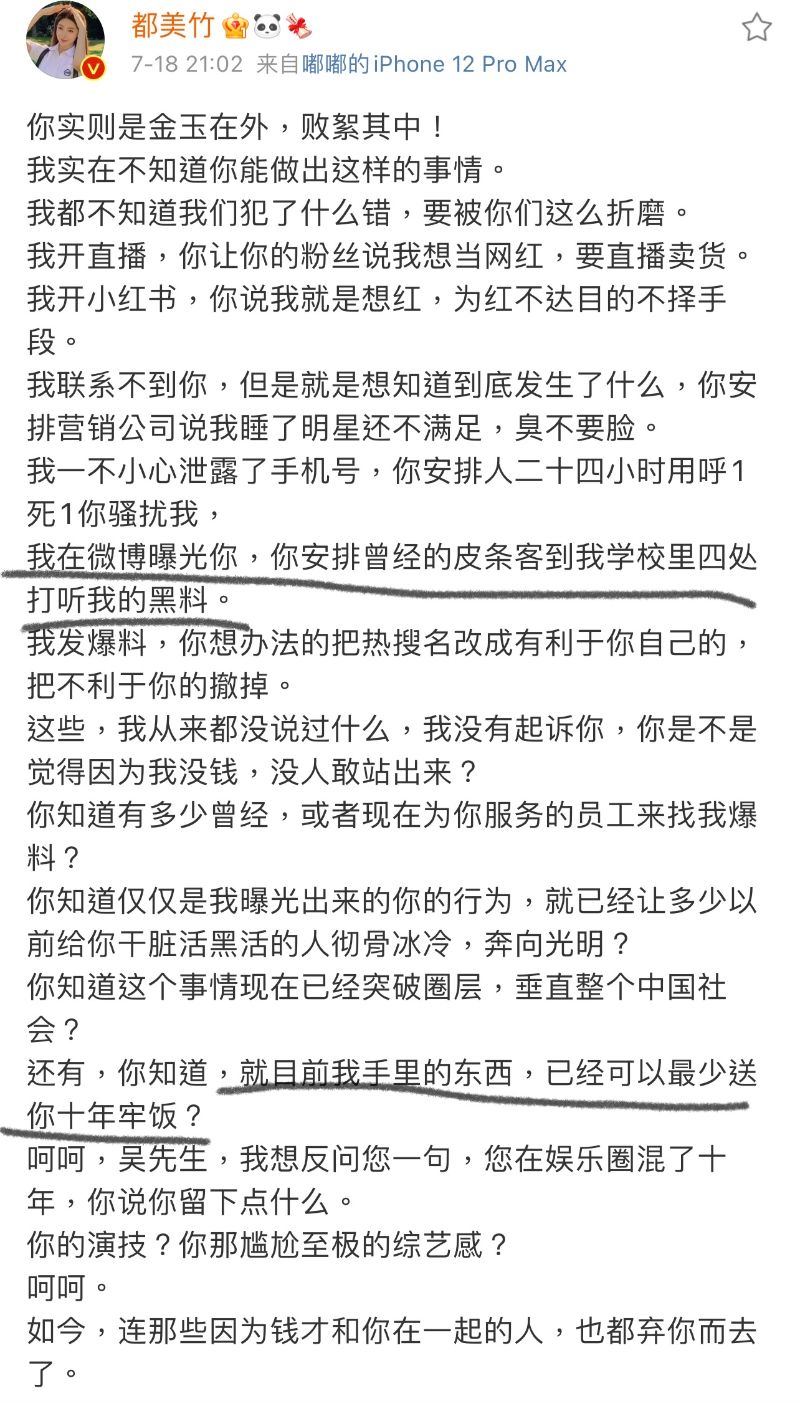都美竹又來喊話吳亦凡了!是噠,續晚上公開了吳亦凡工作人員轉賬通訊記錄之後,都美竹再次發長文,公開了大量信息!
