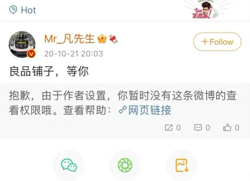 目前吳亦凡微博內有關蘭蔻的貼文,被已經沒辦法查看。