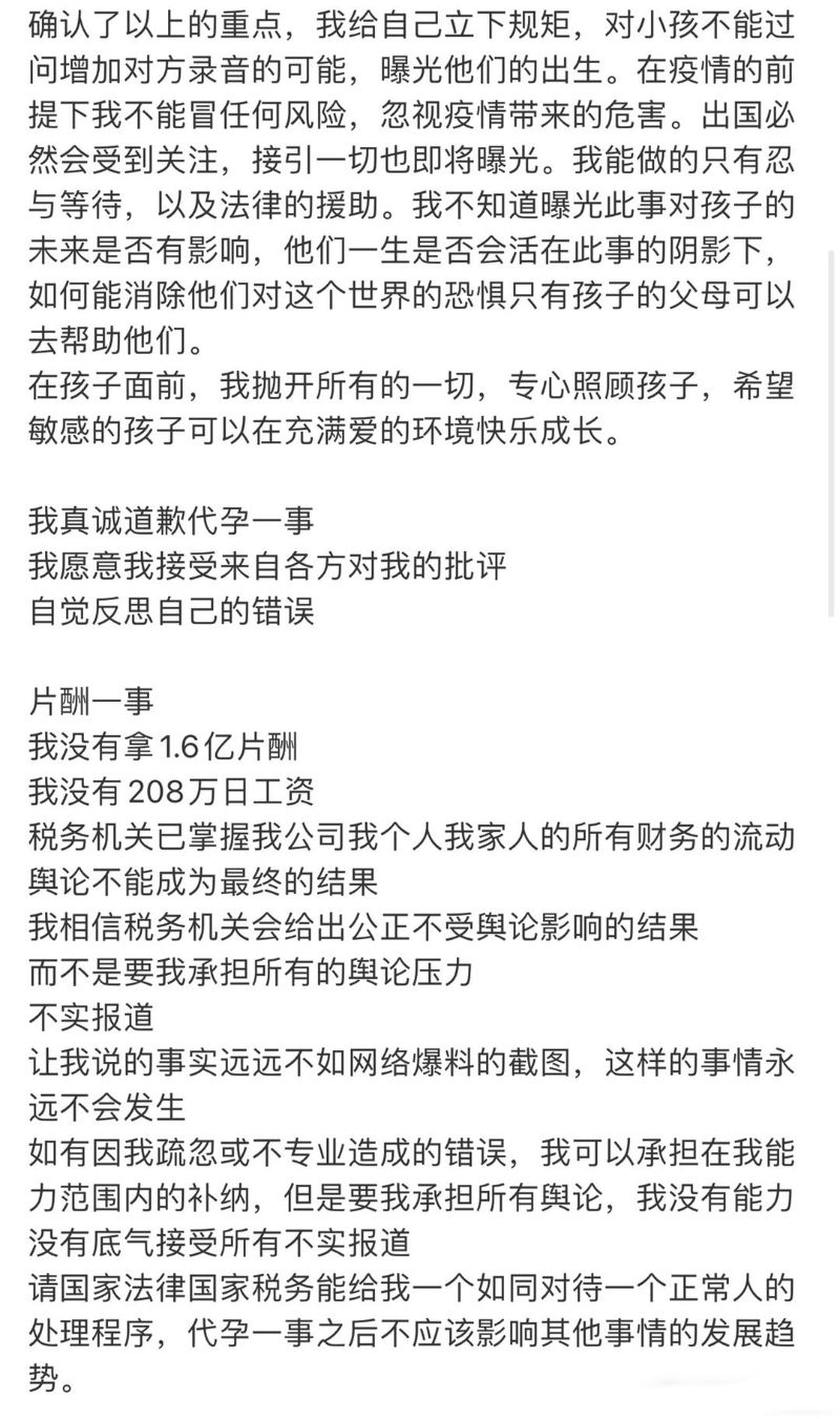 2。為代孕一事道歉,但代孕不應該影響其他事情的發展趨勢。
