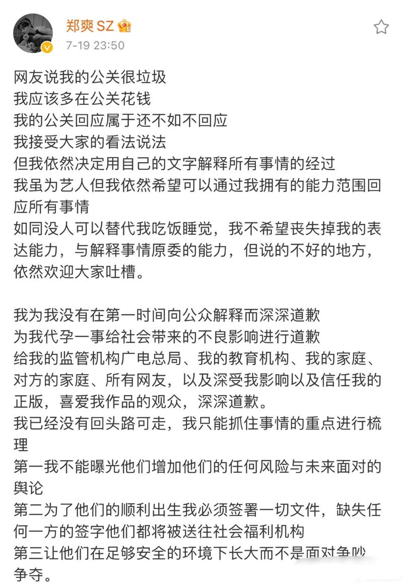 為我代孕一事給社會帶來的不良影響進行道歉