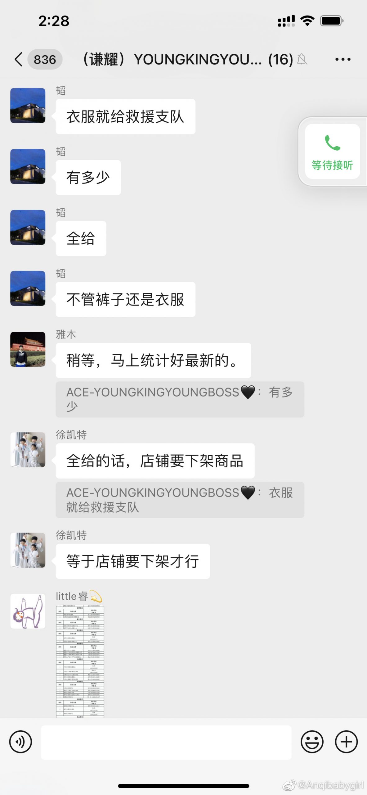 從她公開的聊天截圖中,黃子韜下令將品牌的衣服褲子全給救援隊,有多少給多少。員工提醒他全給的話,表示店鋪要下架商品,韜總直接回復:「下架,全部下架!」、「這時候不用吝啬」、「能幫的都幫」